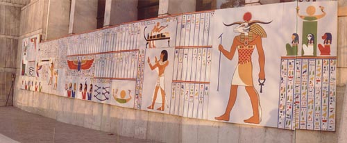 The inscription panels outlining the story of the sun god. From the 1983 production of RA at the Ontario Science Centre